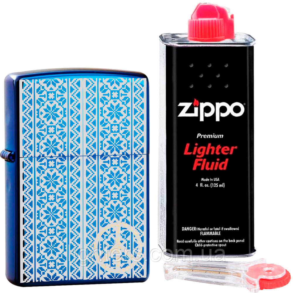 Набір Zippo "Вишиванка" + кремній + бензин зипо 21055