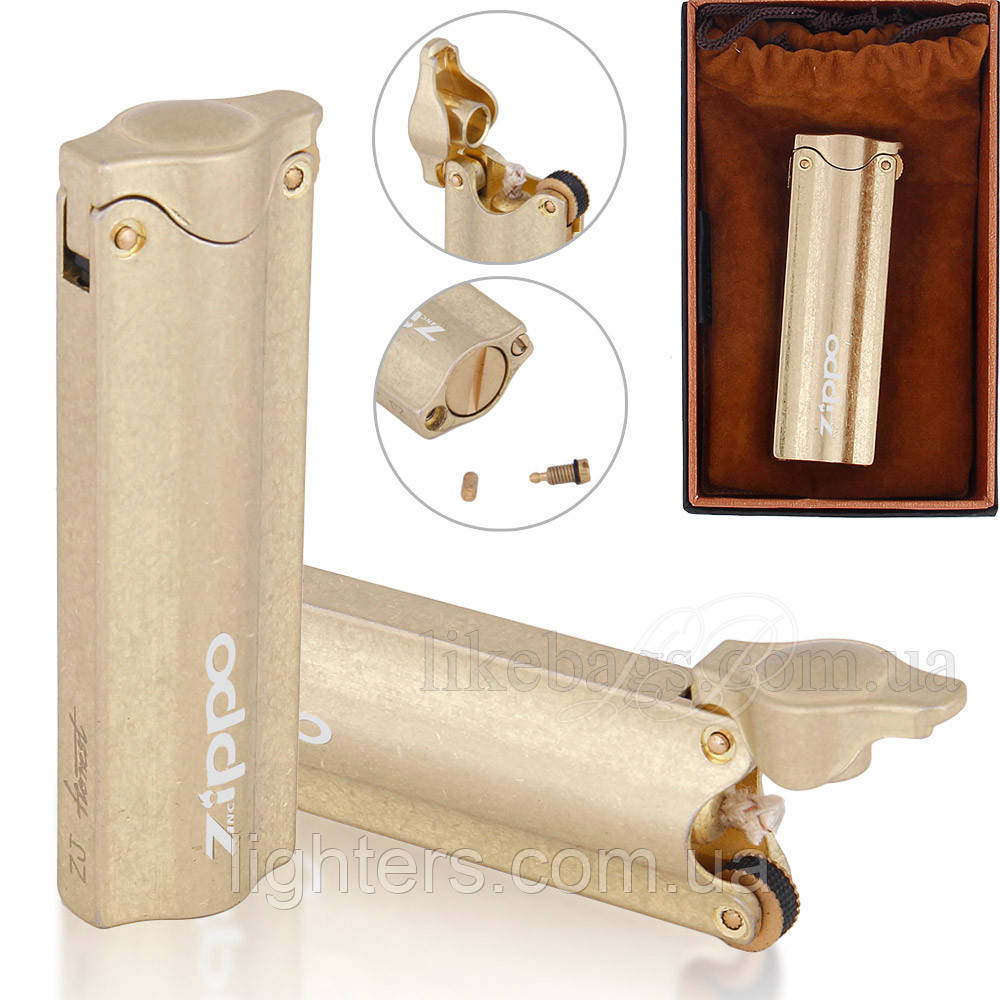 В комплект входить: Бензинова запальничка, фірмовий бензин 5мл, 4 запасних кремушка (1 захований в самій запальничці), щіточка, чохол.